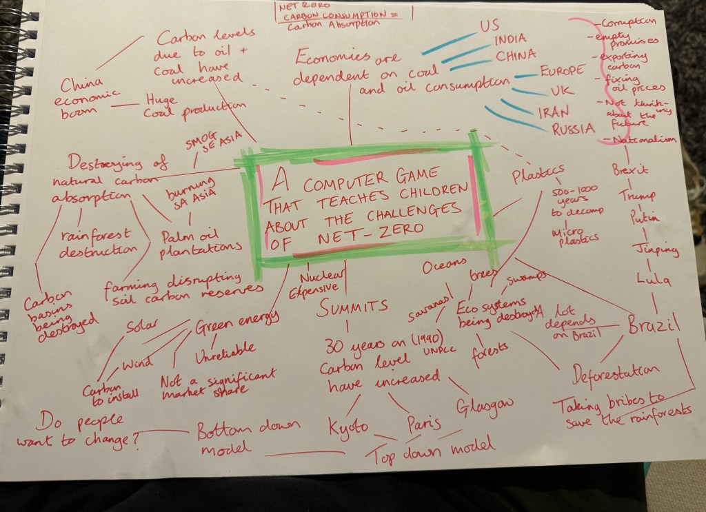 So I took a step back, forgot about any design process, and remembered my creative principles. I have been focusing too much on trying to learn new things, such as design processes, and getting bogged down instead of having fun and enjoying the process. When I started to relax more, I realised that if I want to make a game about the challenges of climate change, I need to understand two things: